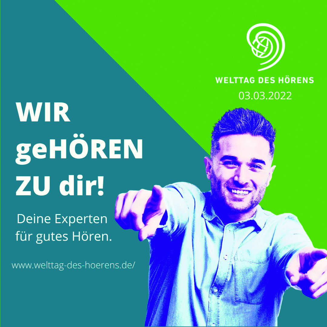 AKTIONEN. Zum bevorstehenden Welttag des Hörens am 3. März 2022 stehen die Akteure der Hörversorgung im Mittelpunkt der deutschsprachigen Kampagne. Unter dem Motto „WIR geHÖREN ZU dir!“ stellen sich die wichtigen technischen, medizinischen und hörakustischen Dienstleister vor, die Menschen mit einer Hörminderung auf ihrem Weg zum guten Hören begleiten und den Erfolg ihrer Hörversorgung erst ermöglichen.