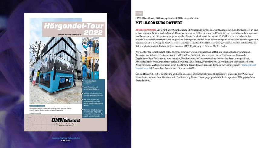 KIND Hörstiftung: Stiftungspreis für 2023 ausgeschrieben