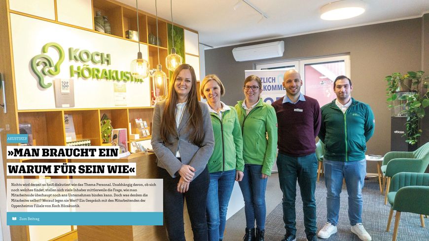 Was schätzen Mitarbeitende an ihrer Arbeitgeberin? Als wir Koch Hörakustik in Oppenheim besuchten, holte Inhaberin Saskia Siegler-Koch ihr Team mit ins Gespräch